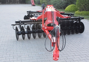 Los ángulos direccionales que afectan la profundidad de trabajo, las propiedades de inclinación y trituración de los discos se pueden ajustar fácilmente con el mecanismo de orificios múltiples en el chasis. El ajuste del ángulo de dirección se puede proporcionar opcionalmente con control mecánico o hidráulico.