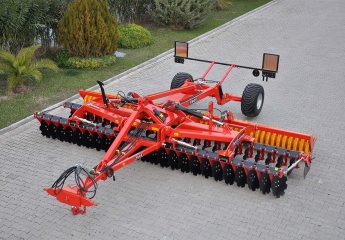 Расстояние между передними и задними дисками составляет 90 см, высота шасси составляет 75 см, а расстояние между дисками составляет 24,5 см. Большая рабочая площадь дисков обеспечивает наиболее эффективный перенос почвы спереди назад и работу с минимальным скоплением пожнивных остатков.